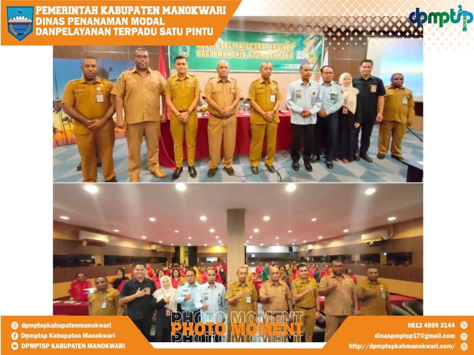 Kepala Bidang Pengaduan, Kebijakan dan Pelaporan Layanan yang dalam hal ini mewakili Kepala Dinas PMPTSP menghadiri Pembukaan kegiatan Sosialisasi Tata Cara Perijinan bagi UKM (NIB, BPOM dan HAKI) yang dilaksanakan di Hotel Valdos Manokwari. Kegiatan ini diselenggarakan oleh Pemerintah Provinsi Papua Barat melalui Dinas Koperasi dan UKM Provinsi Papua Barat dan dihadiri sekitar 40 para pelaku UKM.